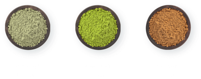 Just like other Kratom strains, this exotic-sounding strain comes in three varieties. That is, White Maeng Da, Green Maeng Da, and Red Maeng Da – all of which are named depending on the color of its Kratom leaf vein.